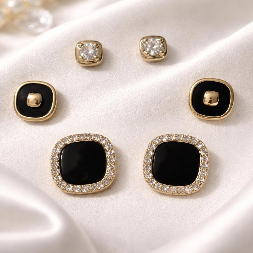Šis rinkinys – tikras stiliaus žaidimas: trys poros skirtingo dydžio auskarų, kuriuos gali nešioti visus kartu, kurdama drąsų, išraiškingą įvaizdį, arba kiekvieną porą atskirai, suteikiant subtilų, rafinuotą akcentą. Įkvėpti klasikinės prabangos, jie balansuoja tarp minimalizmo ir puošnumo, leidžiant kiekvienai dienai ar progai pasirinkti savo nuotaiką.