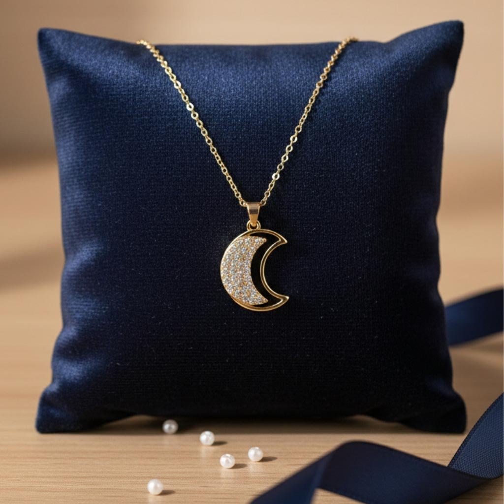 Aukso spalvos grandinėlė su elegantišku pakabuku, kurio forma primena mėnulį. Švelnios, švytinčios aukso spalvos ir minimalistinis dizainas sukuria ramybės ir paslaptingumo įspūdį. Pakabukas subtiliai pabrėžia moteriškumą ir eleganciją, o grandinėlės lengvumas leidžia ją patogiai nešioti kasdien ar ypatingomis progomis. Tai stilingas aksesuaras, kuris puikiai dera tiek su minimalistiniu, tiek su bohemišku stiliumi.