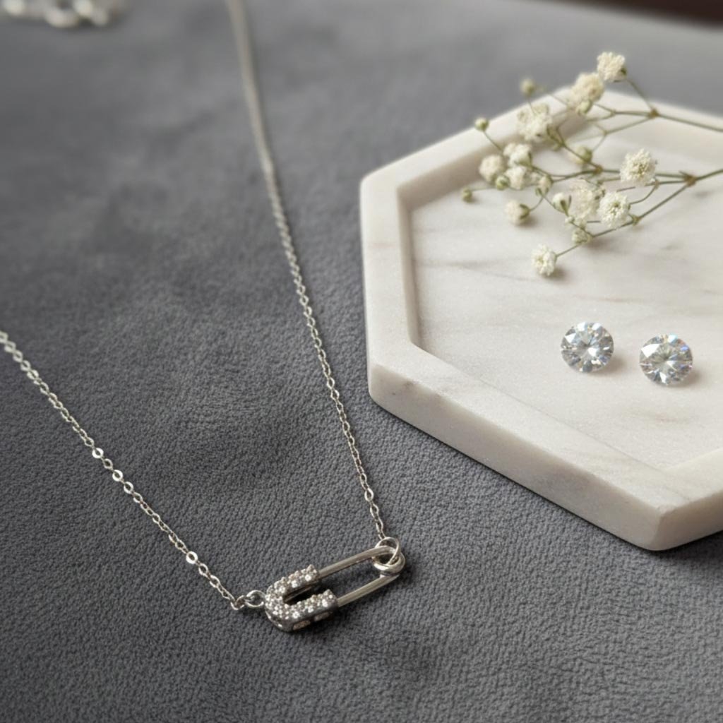 Sidabro spalvos grandinėlė su pakabuku, primenančiu sąvaržėlę. Šis originalus motyvas suteikia papuošalui industrinį, modernų charakterį, o sidabro blizgesys prideda švelnaus elegantiškumo. Papuošalas puikiai tinka tiek minimalistiniam, tiek drąsesniam stiliui, o savaržėlės formos pakabukas tampa išskirtiniu akcentu, kuris iškart traukia žvilgsnį.