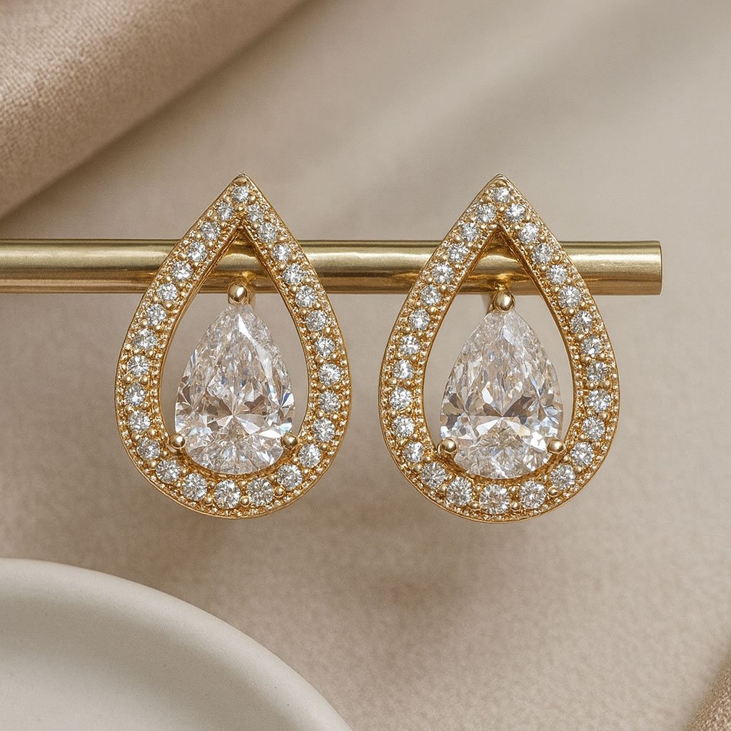 Subtilūs lašo formos auskarai su skaidriu cirkonio akmeniu ir spindinčiais akcentais suteikia įvaizdžiui šviesos, rafinuotumo ir tinka tiek kasdienai, tiek ypatingoms progoms.